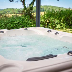 Détendez vous et appréciez le confort du spa chauffé toute l'année, situé sur la terrasse couverte.