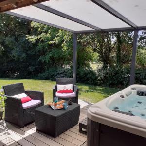 Si la météo est favorable, admirez aussi une partie des Pyrenées, tranquillement installés dans le spa.